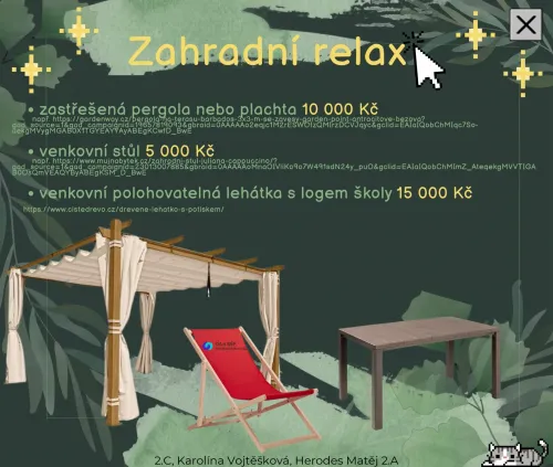 Za budovu OA se jím stal projekt „Zahradní relax“ žáků Karolíny Vojtěškové ze 2.C a Matěje Herodese ze 2.A.