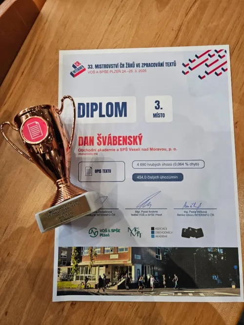Ve dnech 24.–25. března 2026 se na VOŠ a SPŠE Plzeň uskutečnilo 33. mistrovství České republiky žáků ve zpracování textu. Soutěž přilákala ty nejlepší studenty z celé republiky a nabídla dva dny plné náročných disciplín, soustředění i silné konkurence.