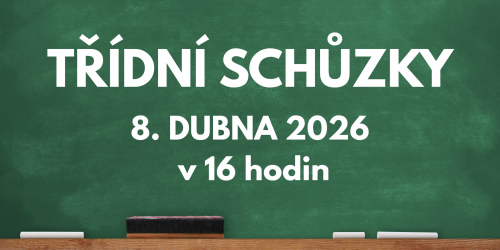 zveme Vás na třídní schůzky, které se uskuteční ve středu 8. dubna 2026 od 16:00 hodin v kmenových učebnách.