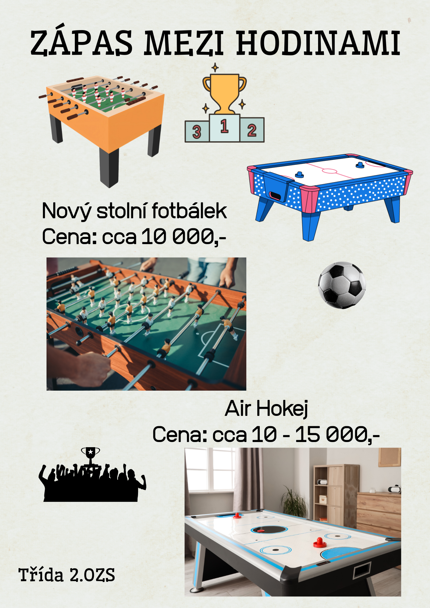 Cílem je zpříjemnit přestávky a volný čas žákům. Nový stolní fotbálek a air hokej nabídnou prostor pro zábavu,